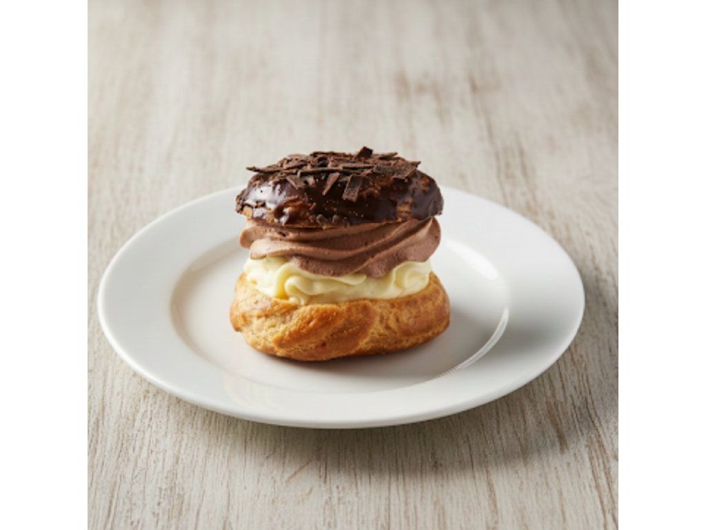 1ks/85 Kč Odpalované těsto,žloutkový krém s vaječným koňakem,pařížská šlehačka,čokoláda